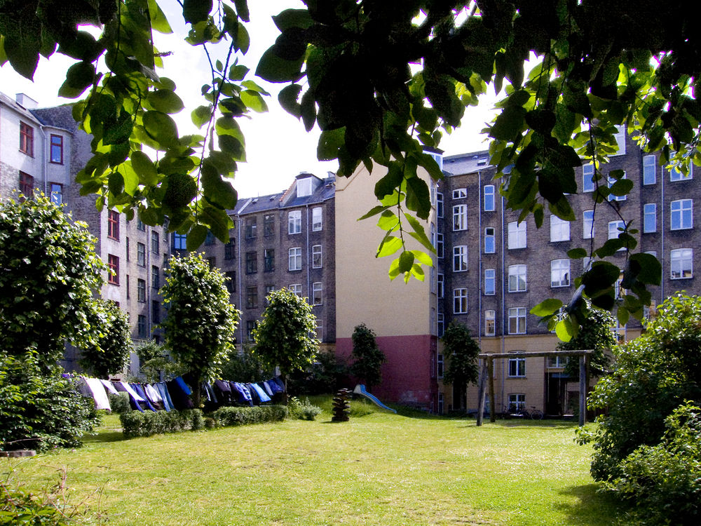 Til ejendommen hører der en meget spændende gårdhave i en aflukket gård, der deles med 3 ejerforeninger. Der er borde, bænke og grille til rådighed for ejendommens beboere, foruden petanquebane og legeplads. Om sommeren holdes der ofte børnefødselsdag og diverse selskaber.
