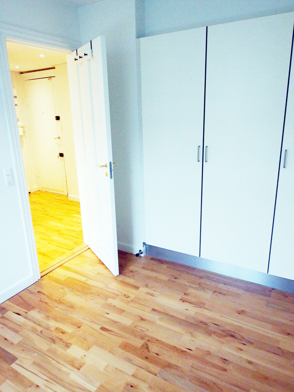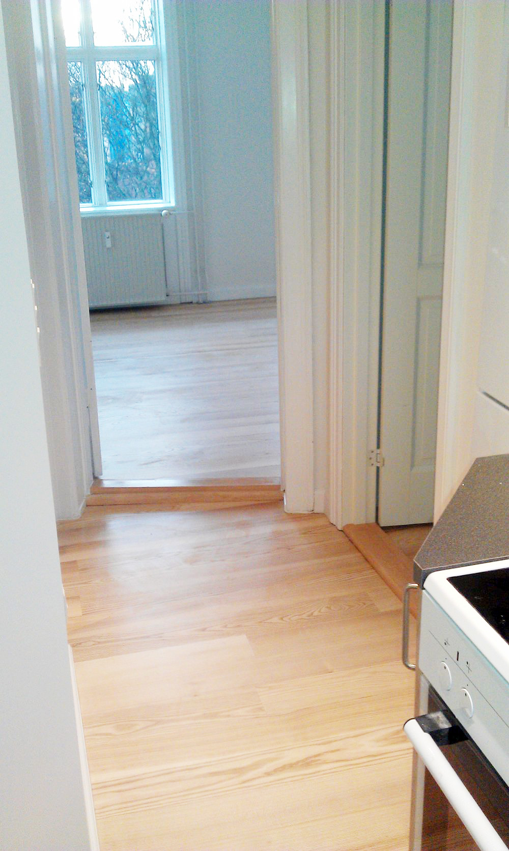Der er nye massive, lakerede plankegulve, nye døre, isoleret mod loft og ydervægge.